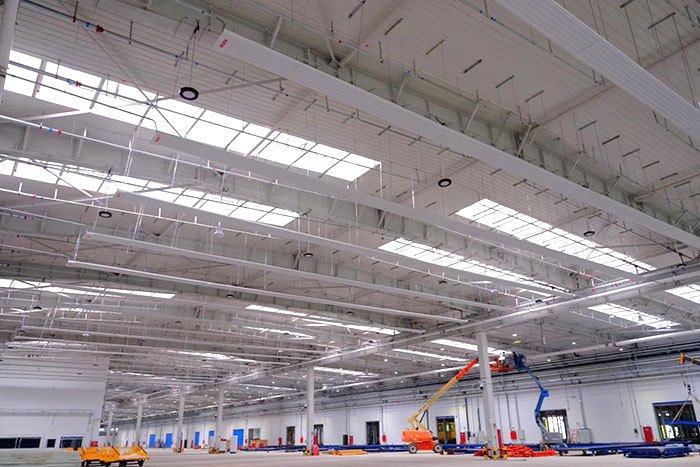 全新的低矮型高大空間冷暖空氣處理機(jī)應(yīng)用武漢中車組裝車間,全新的數(shù)字直流了解更多